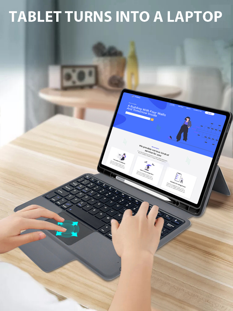 This keyboard case combines a magnetic case and precision trackpad with a full-size keyboard for your tab. The high-quality leather case is built with a powerful magnet. So your tablet could be perfectly magical adsorbed on the cover, offering double protection. Full touchpad gesture support transforms your tablet into a productivity machine for working on spreadsheets and documents, a robust learning tool for remote classes, and more—the possibilities are endless.