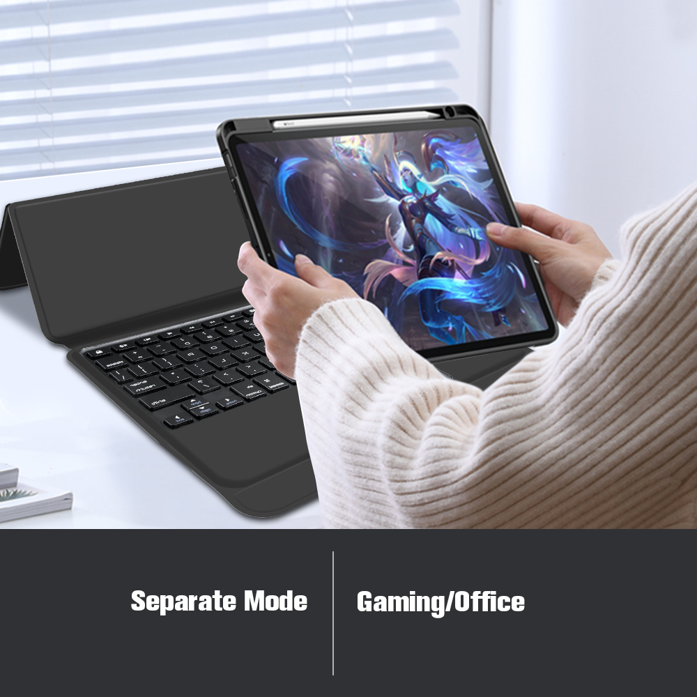 This keyboard case combines a magnetic shockproof shell and precision trackpad with a full-size keyboard for your iPad. The shockproof shell is perfectly magical and adsorbed on the cover, offering double protection. Full touchpad gesture support transforms your tablet into a productivity machine for working in spreadsheets and documents, a robust learning tool for remote classes, and more—the possibilities are endless.