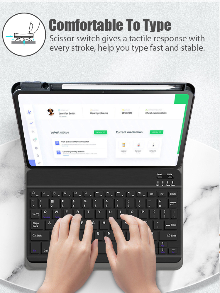 Detached design, keyboard case, magnetic TPU back shell, and ultra-slim leather case. This keyboard case combines a magnetic shockproof shell and a removable Bluetooth keyboard with a precision touchpad. Full touchpad gesture support transforms your iPad into a productivity machine for working on spreadsheets and documents, a robust learning tool for remote classes, and more—the possibilities are endless.